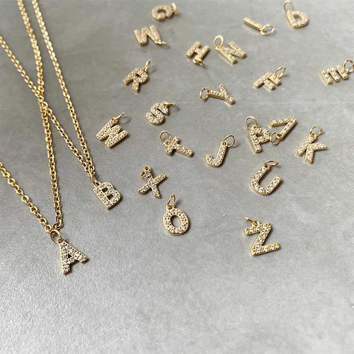 New Stock Initial Pendant Stainless Steel Letters Necklace Bracelet Alphabet Charms 18K Gold Plated DIY Zircon Initial Charms