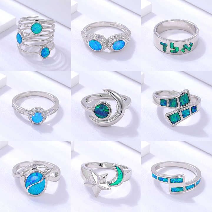 XYOP Hot selling 925 sterling silver synthetic opal ring wholesale for women gift Personality Star Moon design jewelry