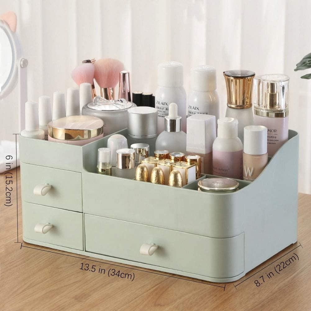 About this item ➣【Designed for Everyday Use】- The Organizer Meticulously Every Detail, Considered to Bring You the Most Intuitive and Convenient Makeup Storage Yet. Our Versatile Organizers are Designed Beautifully. It Suits Your Various Storage Needs: Makeup Organizer, Vanity Organizer, Desk Organizer, Bathroom Organizer, etc! ➣【Large Capacity Classified Storage】 - 1 large drawer and 2 small drawers for your facial mask or vanity kit&small item. 8 top compartments hold at least 8-10 lotions, 6-8 moisturizer 15-20 makeup brushes of various sizes, 10-20 lipsticks, 8-10 nail polishes, 10 eyeliners, 3 large eye shadow palettes, and other small everyday collection. Let you quickly find what you need with the MIUOPUR makeup organizer. ➣【Multifunction OrganizerOrganizer box is also perfect for storing office supplies such as pens, post-it notes, glue, tape, scissors, stapler, paper clips, cell phone, business cards, etc. Or spices, condiments, grains, canned food, salt, and pepper grinders and other kitchen supplies. ➣【High-Quality Environmentally Friendly Materials】-The Organizer box made of high-grade PP material safety and environmental protection.Non-toxic and odorless that you can safely store delicate cosmetics, Never fall. Never out of Style! ➣【Great Gift】 - The elegant and practical design often used as a fantastic present for Weddings, Valentine’s Day, Birthdays, Christmas, etc. This is a great gift that will make your friends very happy and organized in the next few years.